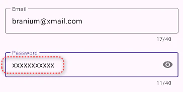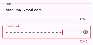 - Nếu ta nhập quá 40 kí tự, giao diện sẽ hiển thị cảnh báo bằng cách vẽ viền ô nhập liệu màu đỏ: