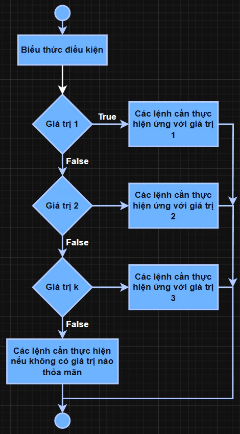 expression: Giá trị hoặc biểu thức cần kiểm tra (có thể bỏ qua nếu dùngwhennhư câu lệnh).value1,value2: Các giá trị hoặc biểu thức được so sánh vớiexpression.- Nhánh