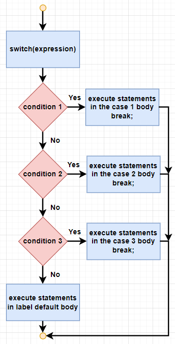 - Nếu sau khi tất cả các case được đánh giá mà không có case nào được thực hiện, khối default sẽ được thực hiện. Kết thúc khối default không cần có break nhưng bạn có thể thêm vào. default luôn ở sau cùng cấu trúc switch.