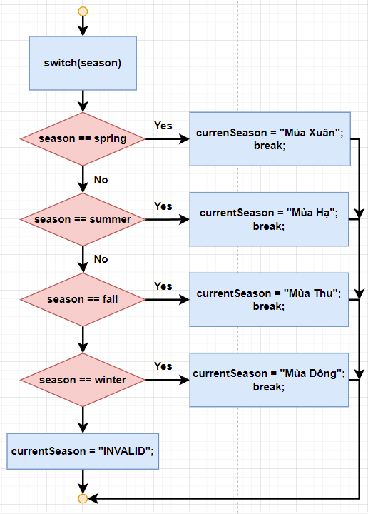 - Ví dụ 1: Một mùa của năm chỉ có thể là xuân, hạ, thu và đông. Yêu cầu nhập vào tên mùa tiếng Anh và đưa ra màn hình tên mùa tương ứng bằng tiếng Việt.