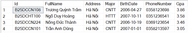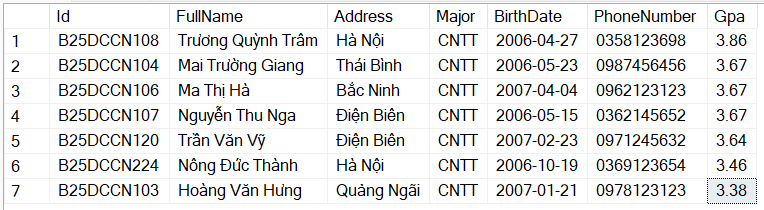 Bài 4.2. Mệnh đề WHERE